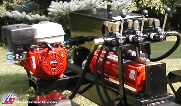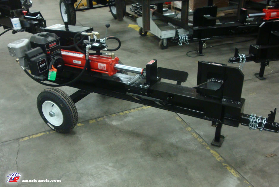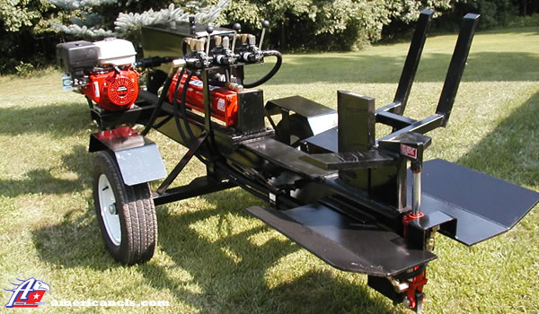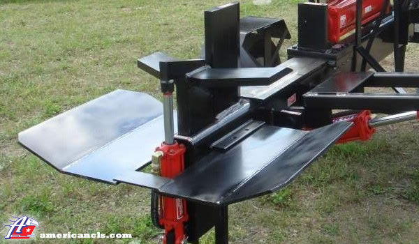 Our AM26HW-1322H combines a standard 12″ Tall Splitting Wedge with adjustable hydraulic wings. These wings can be lowered out of site or used to create a 4-Way Splitting wedge. When the wings are out of site, this machine can tackle the nasty wood with the full force of the 5″ Diameter Cylinder and 22 GPM 2-Stage Pump. This machine comes standard with 3/8″ Thick Pans. The only option left is either an Electric Start 390GX Engine and/or Hydraulic Log lift.